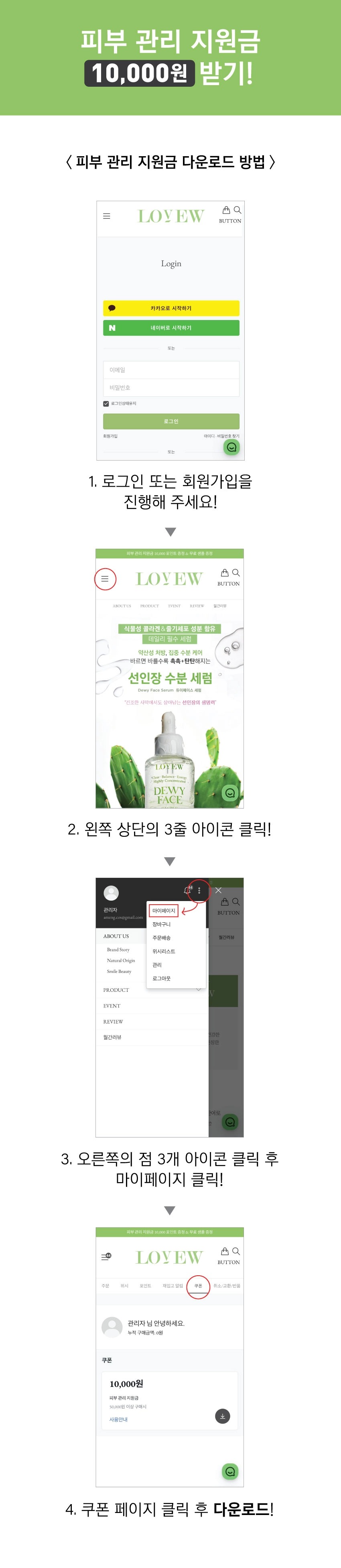피부 관리 지원금 1만원 다운로드 받고 2+2 세트